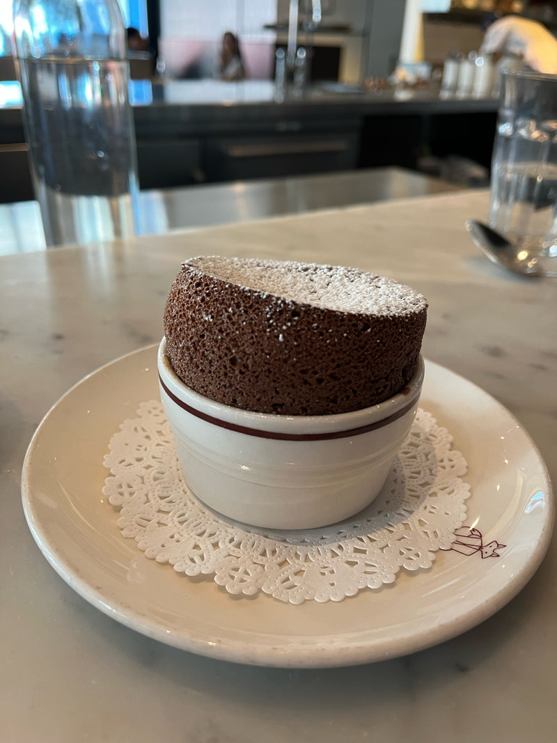 Delicate porcelain ramekins crafted for Monsieur Benjamin, Chef Corey Lee’s French restaurant, designed for their chocolate soufflé.